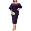 Womens Sexy Bodycon Party Dress Off The Shoulder Pearls Strap Midi Dress Ruffle Hem Cocktail Dresses